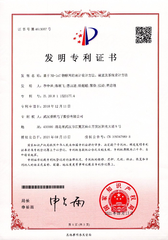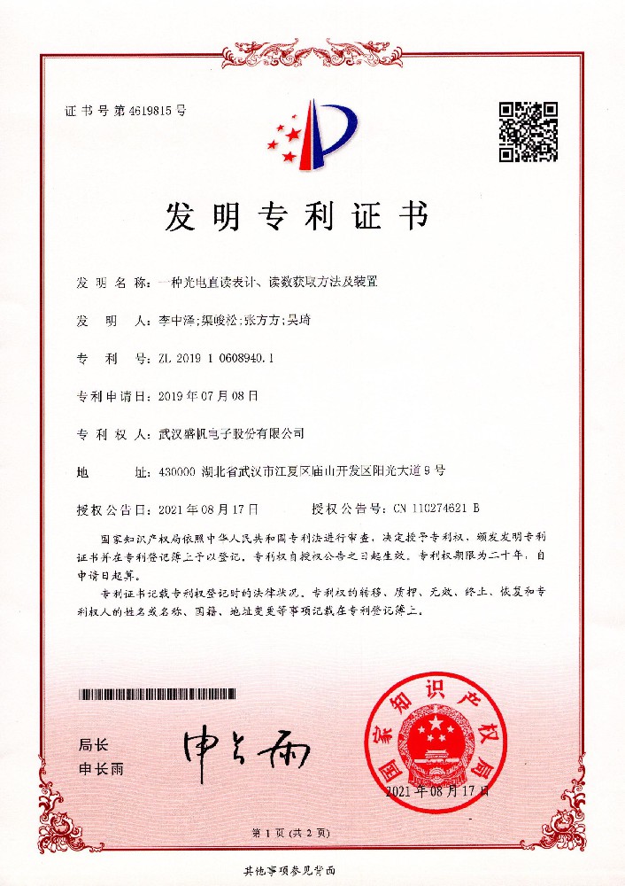 發(fā)明專(zhuān)利證書(shū)